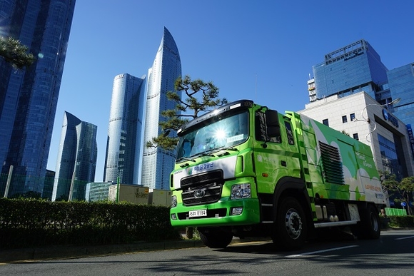 부산을 비롯해 수도권과 대전, 세종 등 10개 시·도에 이틀 연속 미세먼지 비상저감조치가 발령된 가운데 부산환경공단이 도로 미세먼지 제거차량 비상 운행에 돌입했다.