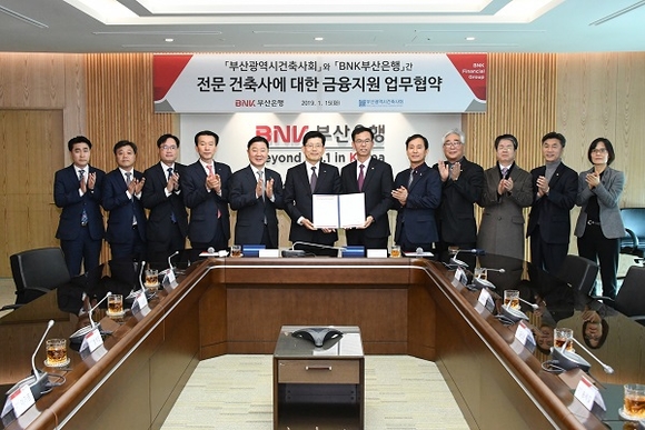 BNK부산은행이 15일 오전 본점에서 부산광역시 건축사회와 ‘전문 건축사에 대한 금융지원’ 업무 협약을 체결했다고 밝혔다.