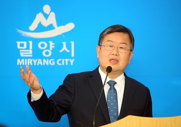 박일호 밀양시장이 16일 밀양시청 브리핑룸에서 새해 첫 기자회견을 갖고 밀양 르네상스 시대 개막을 위한 3대축 전략을 밝혔다.