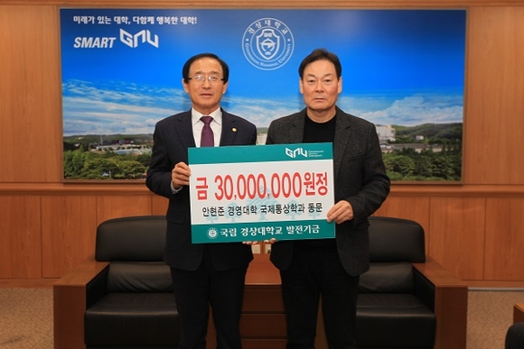 경상대학교는 17일 총장실에서 경영대학 국제통상학과 안현준 동문이 대학발전기금 3000만 원을 출연했다고 밝혔다.