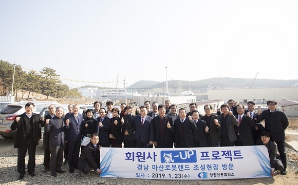 창원상공회의소가 지역 기업인들과 함께 23일 경남 마산로봇랜드 조성 현장을 방문했다.