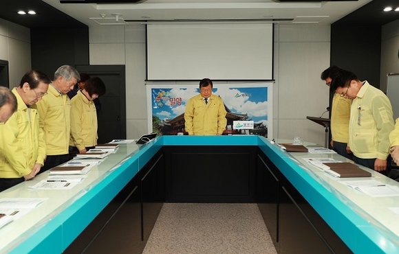 박일호 밀양시장과 간부 공무원들은 이날 보고회에 앞서 세종병원 화재 사고와 관련해 불의의 사고로 유명을 달리한 고인들의 명복을 빌며 애도를 표하는 묵념의 시간을 가졌다.