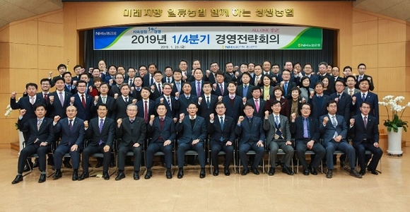 NH농협은행 경남영업본부는 지난 25일 대회의실에서 관내 사무소장 70여명이 참석한 가운데 열린 2019년 1/4분기 경영전략회의에서 화합과 소통을 통해 하나되는 마음으로 2019년 경영목표를 반드시 달성하고 고객중심, 지역중심 경영을 강화해 나갈 것을 결의했다.