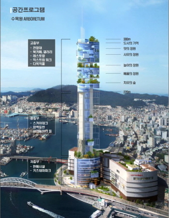 부산시에 따르면 시는 롯데 측에 북항 재개발지역에 관광 랜드마크 건립할 것을 요청했다. 이에 롯데그룹은 과거 사업계획을 백지화하고 원점에서 재검토해 ‘주거 시설을 완전 배제한’ 도심 속 수직공원 컨셉의 열린 문화공간으로 새로운 계획안을 낸 것이다.