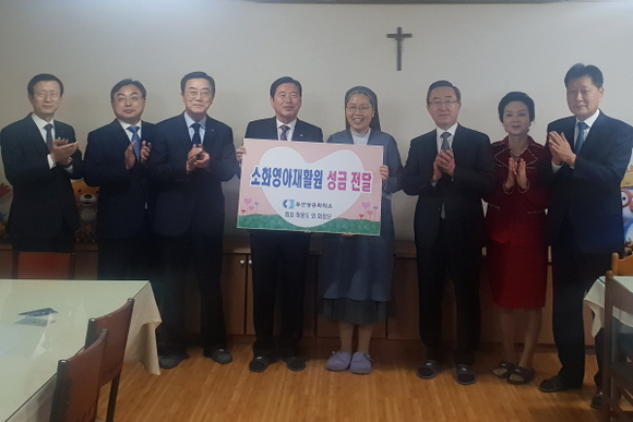 부산상공회의소(부산상의)가 28일 오전 설 명절을 앞두고 부산 남구에 있는 장애아동 양육시설인 ‘소화영아재활원’을 방문해 성금을 전달했다고 밝혔다.