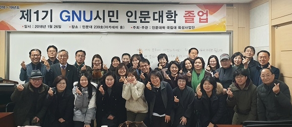 경상대 인문대학은 지난 26일 오후 인문대학 아카데미홀에서 제1기 'GNU 시민인문대학' 졸업식을 개최했다.
