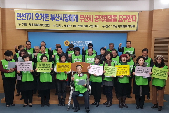 부산지역 시민사회단체 연합인 부산 NGO연합이 오거돈 부산시장에 시정 공약 채택을 요구하고 나섰다.