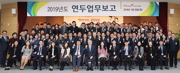 국민건강보험 부산지역본부는 28일 본부 대회의실에서 김용익 이사장이 참석한 가운데 '2019년도 연두 업무보고회'와 '직원소통 현장토론회'를 가졌다.