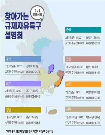 또 지방중소기업청에서는 규제자유특구 ‘지역 전담관’을 지정해 특구 참여희망기업의 궁금증 해소에 나선다는 방침이다.