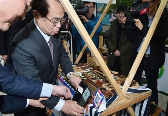 오거돈 부산시장이 시청에서 열린 ‘제로페이 데이’ 행사서 직접 제로페이 결제 체험에 나섰다.
