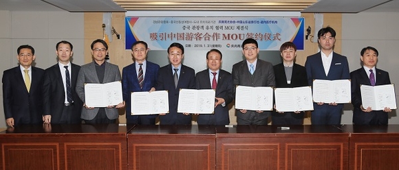 경남도와 경남관광협회가 31일 도청 도정회의실에서 중국 산동성의 메이저 여행사인 청도강산국제여행사 등 3개 대형 여행사와 의료 및 일반관광 교류 유치 업무협약을 체결했다.