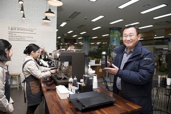 강석주 시장은 진주시장의 지목에 따라 플라스틱 프리 챌리지 캠페인에 즉시 동참하면서 시청민원실에 있는 'I got everything' 장애인 채용 카페에서 개인 텀블러를 사용하는 티타임을 가졌다.