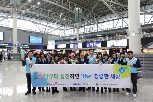 국민건강보험공단 부산중부지사는 지난 31일 KTX 부산역에서 한국부인회 부산시지부 및 코레일 부산역과 합동으로 설 명절 맞이 반부패·청렴 실천 캠페인을 전개했다. 이번 캠페인은 건강보험 사내 공모전을 통해 선정된 '나부터 실천하면 the 청렴한 세상'이라는 슬로건 아래 부산역을 찾은 시민들을 대상으로 설선물 안주고 안받기 등 반부패·청렴문화 확산을 위한 공단의 실천의지를 시민들에게 홍보했다.