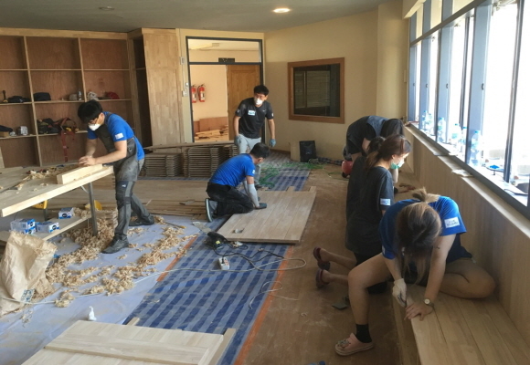 이번에 파견된 장인 A&C 직원들은 재능기부를 통해 리모델링 공사를 진행했다. 부산대 학생들은 장식장, 칠판, 평상모형 보조좌석, 솟을대문 등을 제작하는데 함께했다.