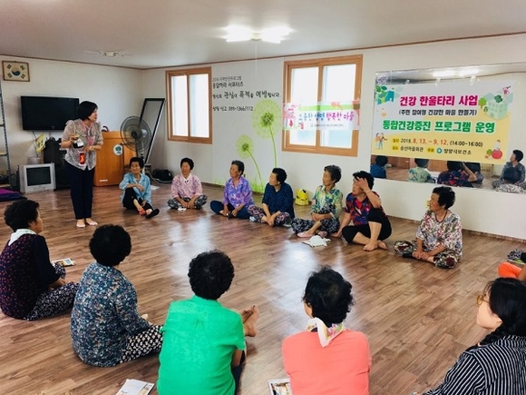 통합 건강증진프로그램은 상반기에 스트레스 해소 레크리에이션, 금연·영양·비만예방·절주·구강·치매 교육과 근력강화 신체활동 등으로 다양하게 구성했다.