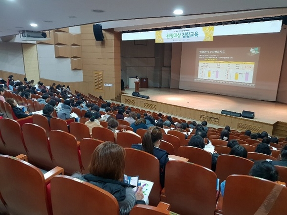 문혜경 센터장(창원대 식품영양학과 교수)의 인사말을 시작으로 창신대학교 식품영양학과 허은실 교수가 '유아 편식지도'를 주제로 교육을 실시했다. 이어 센터 이효진 영양팀장이 '2019년 영양사업 안내', 천정민 위생팀장이 '2019 위생·안전관리 운영 안내'를 통해 어린이 급식소의 영양 및 위생·안전관리의 중요성을 각인시켰다.