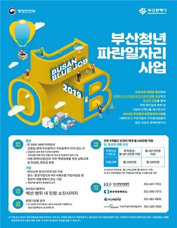부산시는 ‘2019년 부산 청년 파란일자리 사업’에 참여할 청년과 기업을 13일부터 모집한다고 밝혔다.