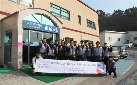 한국도로공사 부산경남본부는 13일 창원시 북면 소재 노인요양시설 믿음의 집에서 창립 50주년 기념 'ex-클린 나눔' 봉사활동을 가졌다.