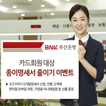 BNK부산은행이 카드회원을 대상으로 내달까지 ‘종이명세서 줄이기’ 행사를 진행한다고 14일 밝혔다.