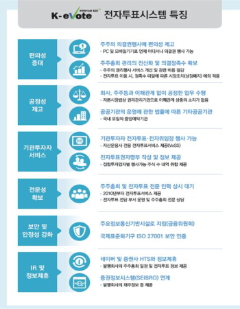 예탁결제원에 따르면 지난해 정기주총에서 SK그룹 4개사, 한화그룹 7개사, 포스코그룹 3개사, 두산그룹 3개사 등이 K-eVote 서비스를 도입한 데 이어 올해도 주요 그룹 계열사들의 도입이 계속되고 있다.