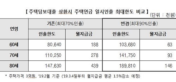 이는 주택금융공사법 시행령 개정에 따라 주택연금 가입 시 기존 주택담보대출 상환을 위해 즉시 찾아 쓸 수 있는 금액이 늘어나게 된 것이다.