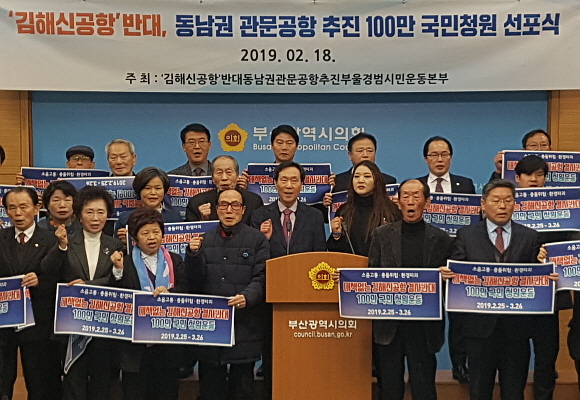 동남권관문공항추진 100만 국민청원 부울경 범시민운동본부는 18일 부산시의회 브리핑실에서 기자회견을 열고 김해신공항 반대, 동남권 관문공항 건설 100만 국민청원을 시작한다고 밝혔다.