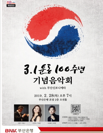 먼저 오는 28일 오후 부산은행 본점 대강당에서 시민 500여명을 초청해 3.1운동의 의미와 순국선열의 희생정신을 기리는 ‘3.1운동 100주년 기념음악회’가 열린다.