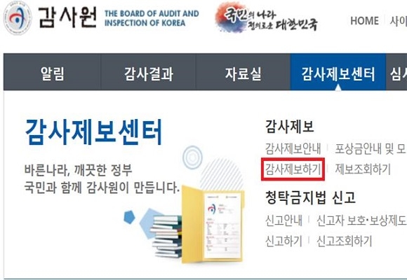신고를 희망하는 기업 또는 개인사업자는 감사원 홈페이지, 신고센터 방문, 우편, 팩스 접수를 통해 신고하면 된다.