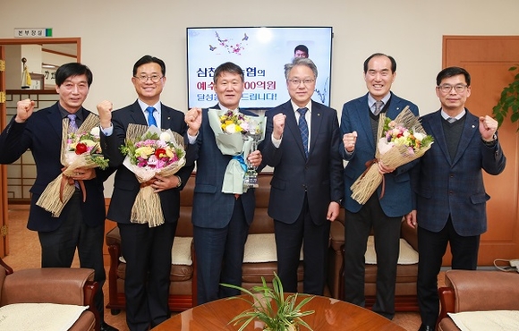 상호금융 예수금 달성탑은 전국 1,134개 농·축협을 대상으로 1천억원, 3천억원, 5천억원, 7천억원 등 일정금액 이상 예수금을 달성한 우수 농·축협에 수여하는 것으로, 이날 삼천포농협은 3천억원 예수금 달성탑을 수상하는 영예를 안았다.