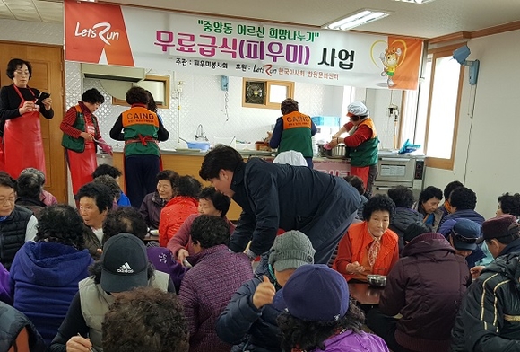 성산구 중앙동 피우미봉사회에서는 한국마사회 창원문화센터 후원으로 매주 금요일마다 이곳 중앙동 제1경로당에서 정성껏 음식을 만들어 어르신들께 따뜻한 식사를 제공하고 있다.