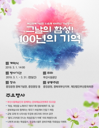 3.1운동 100주년을 맞아 부산시설공단이 부산광복기념관에서 ‘그날의 함성! 100년의 기억’ 기념 문화행사를 내달 한 달 동안 진행한다고 22일 밝혔다.