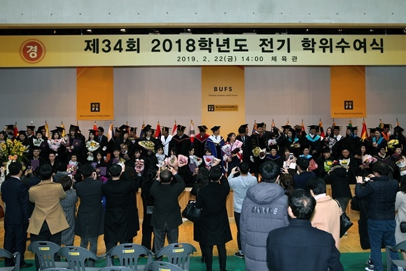 부산외국어대학교는 지난 22일 교내 체육관에서 '2018학년도 전기 학위수여식'을 개최했다.