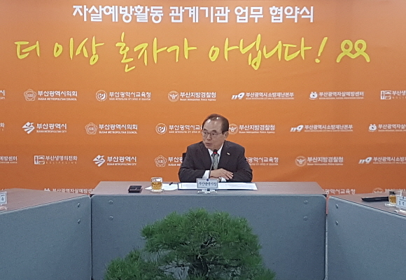 부산시는 28일 오전 10시 30분 시청 7층 회의실에서 시의회, 교육청, 경찰청, 소방본부, 자살예방센터, 생명의 전화와 자살예방활동 관계기관 업무협약을 맺었다.