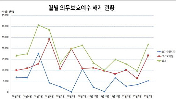 한편 의무보호예수 제도란 자본시장법, 금융위원회 규정, 거래소 상장 규정 등에 의거해 최대주주 및 인수인이 보유한 주식을 일정기간 동안 매도하지 못하게 하는 제도다.