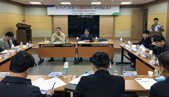 경남농협은 4일 북창원농협에서 관내 수출농협 판매 담당자 및 수출업체 관계자 20여명이 참석한 가운데 수출증대를 위한 '2019년 수출활성화 토론회'를 갖고 경남농협의 역량을 결집해 농산물 수출에 최선을 다할 것을 결의했다.