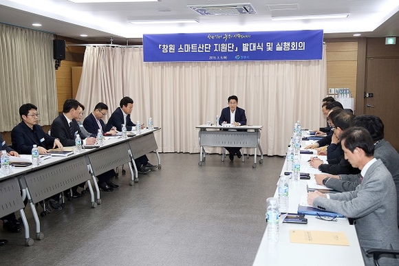 경남 창원시는 5일 창원시청 별관 제2회의실에서 '창원 스마트산단 지원단'을 구성해 발대식 및 제1차 실행회의를 개최했다.