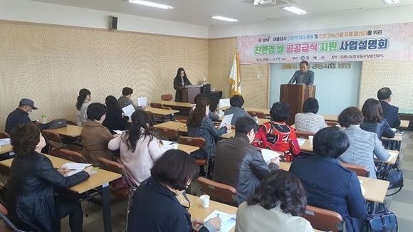 경남 김해시는 14일 김해시농협공동사업법인 미곡종합처리장(RPC)에서 공립·법인 어린이집과 사립유치원을 대상으로 '2019년 친환경 쌀 공공급식 지원사업 설명회'를 가졌다.