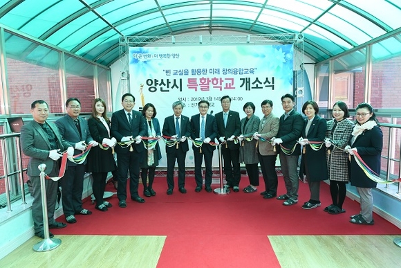 경남 양산시는 14일 신기초등학교에서 학부모, 학생 등 100여명이 모인 가운데 미래 창의융합교육 '양산시 특활학교' 개소식을 가졌다.