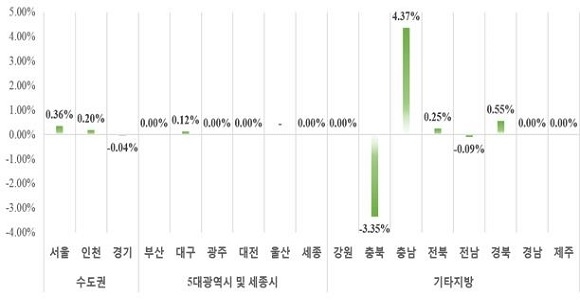 권역별로는 수도권이 515만 8000원으로 전월대비 0.21% 상승했다. 5대 광역시와 세종시는 0.03% 상승한 반면 그 외 지방은 전국 평균보다 높은 0.22% 상승했다.