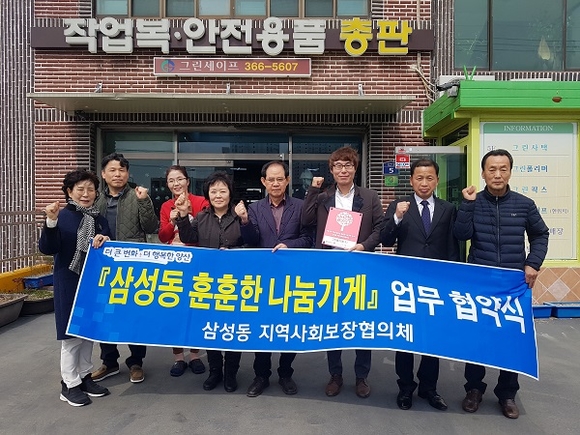 양산시 삼성동지역사회보장협의체는 지난 18일 나눔으로 이웃을 돌보는 '삼성동 훈훈한 나눔가게'가 주민들의 호응에 힘입어 17~18호점과 협약을 체결하고 '이웃愛행복나무' 현판을 전달했다고 19일 밝혔다.