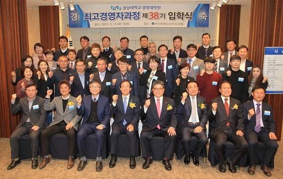 경상대학교 경영대학원은 지난 19일 진주시 판문동 아시아레이크사이드호텔 신관 1층 목련홀에서 제38기 최고경영자과정 입학식을 개최했다.