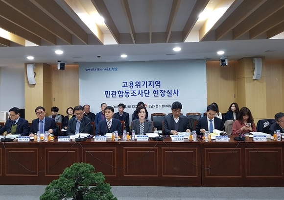 한편 25일 오후 1시에는 경남도청 도정회의실에서 고용위기지역 연장신청을 한 8개 시군구가 한자리에 모여 고용부 민관합동조사단의 현장실사를 받았다. 민관합동조사단은 고용부․산업부·기재부 등 정부부처 관계자 6명과 경제사회노동위원회․산업연구원 등 민간전문가 4명으로 구성됐다.