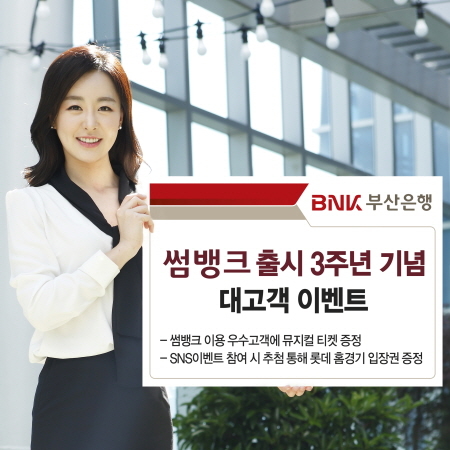 BNK부산은행이 ‘썸뱅크’ 출시 3주년을 기념해 지난 25일부터 내달 10일까지 ‘대고객 이벤트’를 진행한다고 26일 밝혔다.
