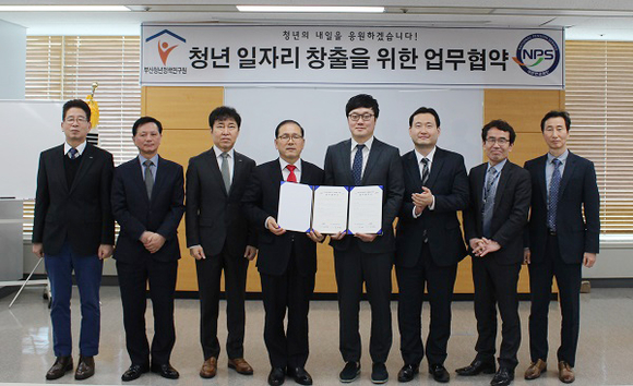 국민연금공단 부산지역본부와 (사)부산청년정책연구원이 양질의 청년 일자리 창출을 위해 27일 국민연금 부산사옥에서 업무협약을 체결했다.