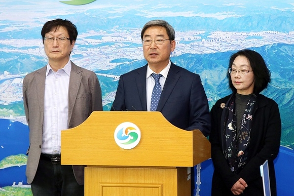 창원시 공론화위원회 어석홍 위원장이 28일 오전 시청 프레스센터에서 기자회견을 갖고 그동안 공론화위원회 추진경과와 제1호 의제를 공표했다.