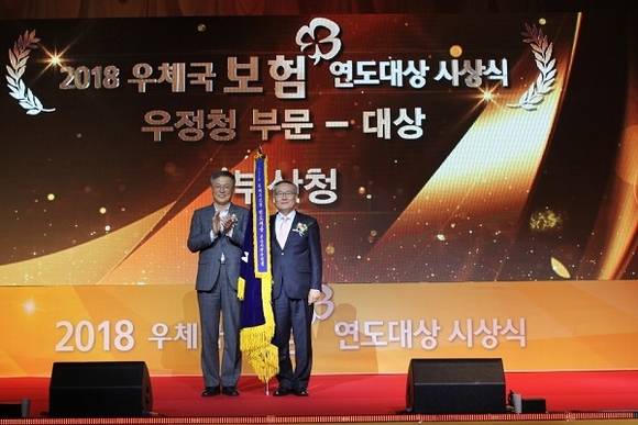부산지방우정청이 29일 대전 컨벤션센터에서 전국 9개 지방우정청의 소속 우체국 직원, FC 등 370여명이 참석한 가운데 열린 2018년도 우체국보험 연도대상 시상식에서 지난해에 이어 2년 연속 대상을 차지했다.