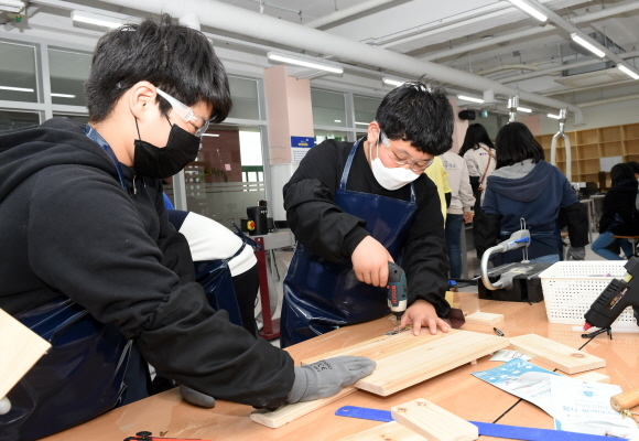 수업은 목공, 천, 재활용품 등을 활용해 생활에 필요한 제품을 만드는 ‘디지로그 창의수업’과 3D프린터, 3D펜, 레이저 커팅기 등 디지털 도구를 활용해 제품을 만드는 ‘하이테크 창의수업’으로 이뤄질 예정이다.