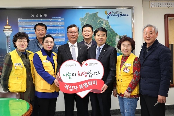 이날 양산시의회는 최영운 사무처장에게 특별회비를 전달했으며, 적십자회비 모금 및 애로사항을 청취하고 인도주의 정신으로 구호활동과 사회봉사활동 등에 헌신하고 있는 적십자의 노고를 격려했다.