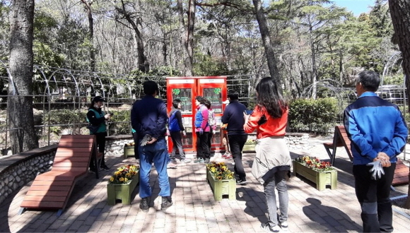 이번 숲속도서관은 기업과 시민이 무상 기증한 물품을 공단 어린이대공원사업소 직원들이 자체 인력으로 지난달 4일부터 약 1달 동안 조성했다.