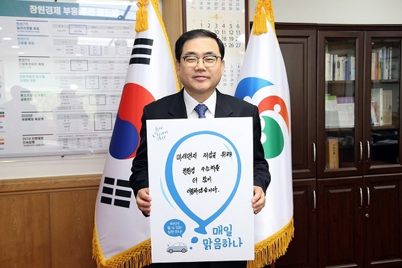 허성무 창원시장이 5일 미세먼지 저감을 위한 소셜 릴레이 캠페인 <#매일맑음하나> 선두주자로 나섰다.